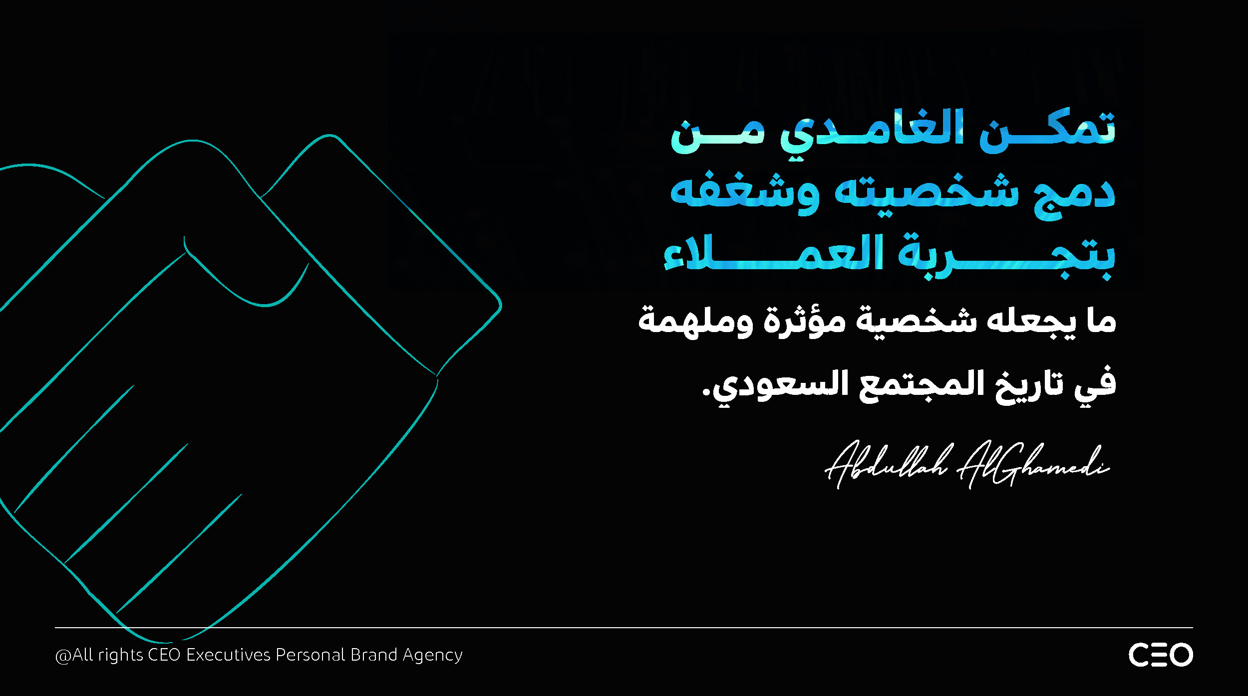 يمتلك عبدالله الغامدي أكثر من 15 عامًا من الخبرة المميزة التي تتجاوز المهارات القيادية في مجال إدارة الأعمال والتكنولوجيا إلى مجال تلبية احتياجات العملاء وضمان رضاهم، وذلك من خلال التركيز على حصولهم على تجربة عملاء ناجحة.أسس أول بودكاست متخصص في تجربة العميل باللغة العربية، ومن ثم أتبعه بتأسيس جمعية تجربة العميل في السعودية ليتحول هذا المجال إلى مزيد من التنظيم المؤسسي والمنهجي
